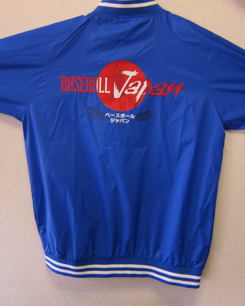 以前、「監督インタビュー」の際にもTシャツを作成したことがあるのですが、今回はインタビュー用に「Baseball Japan」のジャンパーを製作いたしました。
