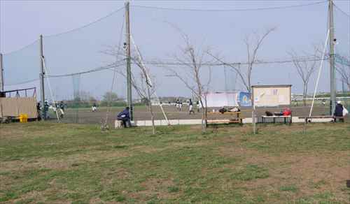 グラウンドの外も空き地になっており、隣のグラウンドとはずいぶん距離があります。専用のケージや設備を持っているのは中学軟式クラブチームでは珍しいですね。